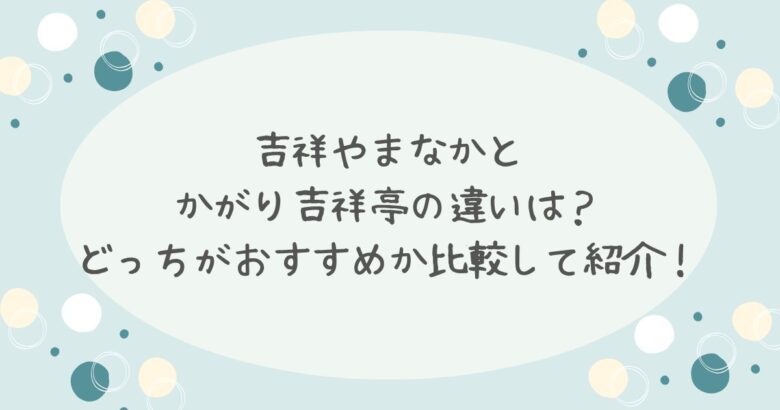 吉祥やまなかとかがり吉祥亭の違いは?どっちがおすすめか比較して紹介!