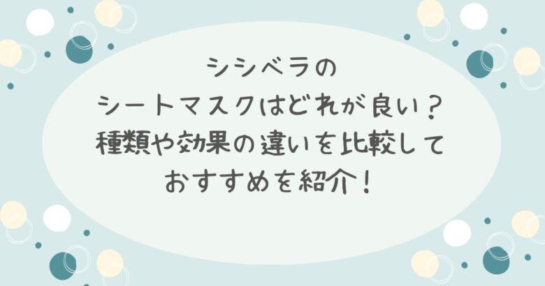 シシベラのシートマスクはどれが良いか迷った場合には、