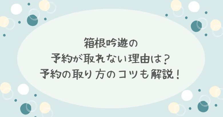 箱根吟遊の予約が取れない理由や、予約の取り方のコツを解説しました!